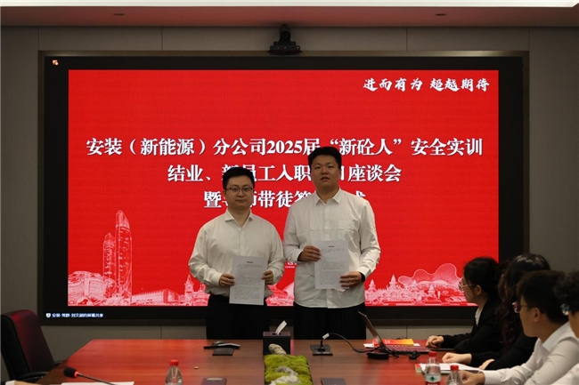 初冬时节暖意浓,薪火相传启新程。11月17日,中建八局总承包公司安装(新能源)分公司2025届“新砼人”安全实训结业、新员工入职百日座谈会暨导师带徒签约仪式在沪举行。分公司党委副书记、纪委书记、工会主席、副经理王琳出席会议并讲话,安全生产监督管理部、施工管理部、商务法务部、技术质量部、党群工作部相关负责人与2025届全体新员工齐聚一堂,共话成长、共绘蓝图。